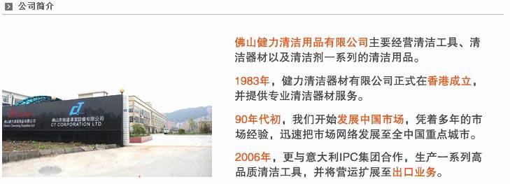 佛山健力清潔用品有限公司公司于1983在香港成立,初時主要業(yè)務是提供清潔機械之維修保養(yǎng)及清潔技術(shù)顧問,并兼營機械銷售,后憑著多年累積之市場及維修保養(yǎng)經(jīng)驗,直接引進歐美各地之專業(yè)產(chǎn)品及技術(shù),而配套成為深受用戶們信賴之健力清潔用品系列。 健力用品供應有限公司于1991年展開在中國國內(nèi)之業(yè)務,總部設(shè)于廣東佛山市,而分銷網(wǎng)絡(luò)已遍及各省主要城市。佛山總部除陳列室外,并設(shè)有倉庫及維修中心,以支持各地分銷業(yè)務需要,務求能提供高質(zhì)之服務予使用客戶。
